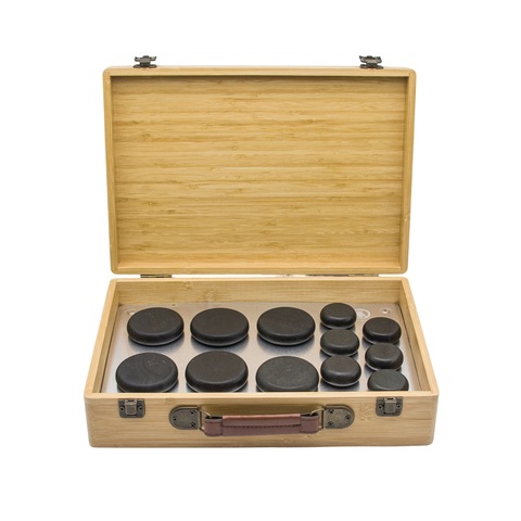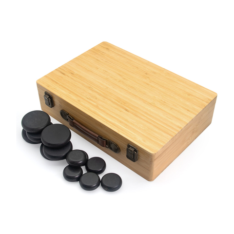 天然竹箱ホットストーンマッサージセットスパヒーターマッサージキット深部組織療法と全身の痛みを軽減